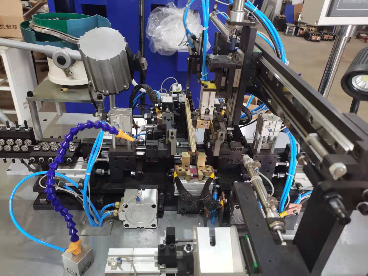 設(shè)備是在用戶所提的技術(shù)標(biāo)準(zhǔn)基礎(chǔ)上,經(jīng)供、需雙方多次探討協(xié)商確定,用于編織線自動(dòng)焊接的設(shè)備。該設(shè)備不僅能達(dá)到用戶的各項(xiàng)技術(shù)指標(biāo),更具有定位準(zhǔn)確、焊接性能穩(wěn)定等功能。焊接全過(guò)程一次完成,提高生產(chǎn)效率,保證產(chǎn)品質(zhì)量。形成了一套適合需方生產(chǎn)工藝的焊接專用設(shè)備。